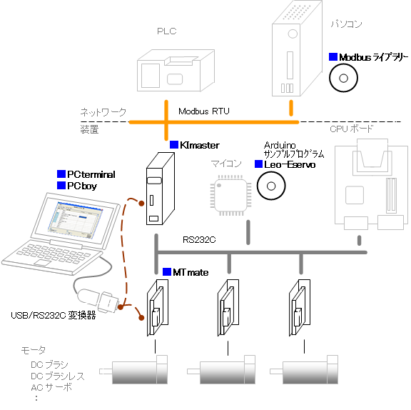 ■KImaster は市販のCPUボードを使ったコントローラです。 ネットワークModbusでPLCとも接続できます